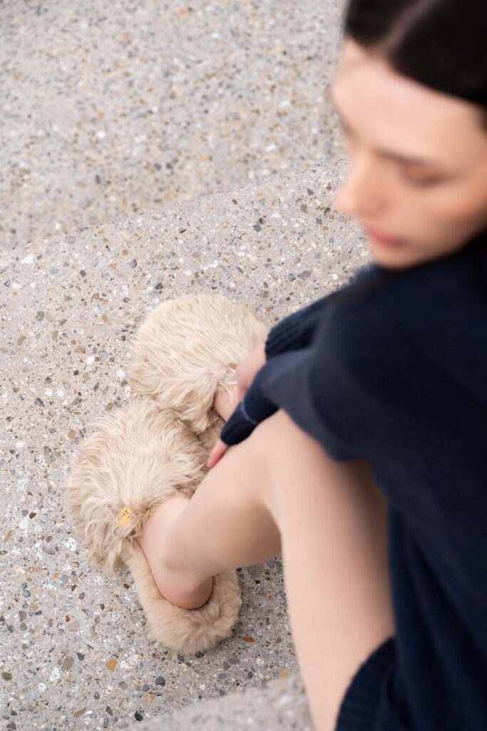 Suri alpaca slippers, €170, Cayo